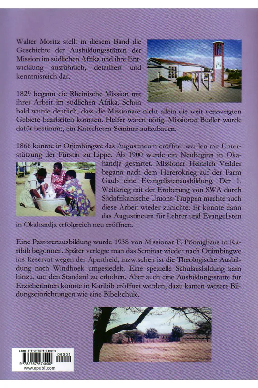Walter Moritz stellt in diesem Band die Geschichte der Ausbildungsstätten der Mission im südlichen Afrika und ihre Entwicklung ausführlich, detailliert und kenntnisreich dar.
