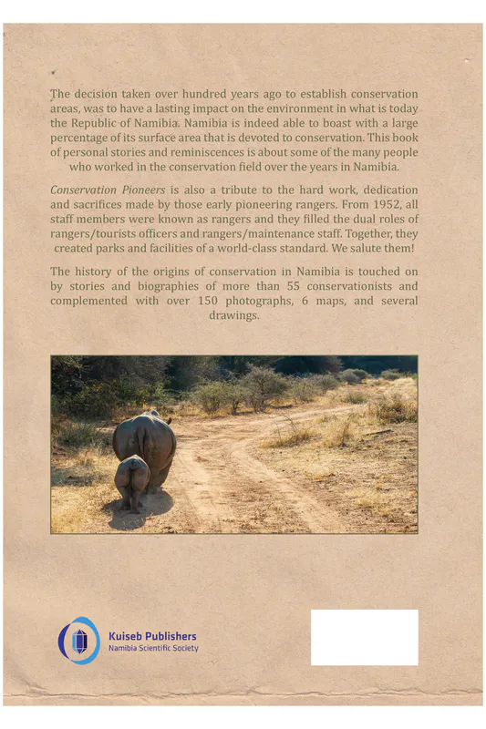 The decision taken over hundred years ago to establish conservation areas, was to have a lasting impact on the environment in what is today the Republic of Namibia. Namibia is indeed able to boast with a large percentage of its surface area that is devoted to conservation. This book of personal stories and reminiscences is about some of the many people who worked in the conservation field over the years in Namibia.